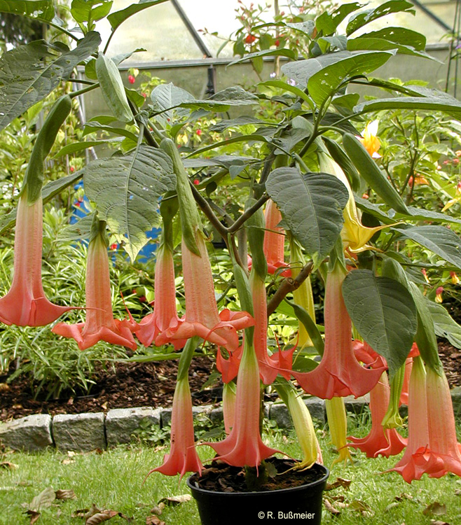 Im Freiland wachsen Brugmansien strauchartig und können mehrere Meter hoch werden. In unseren Breiten können die nicht frostverträglichen Schönheiten als Kübelpflanzen kultiviert werden.